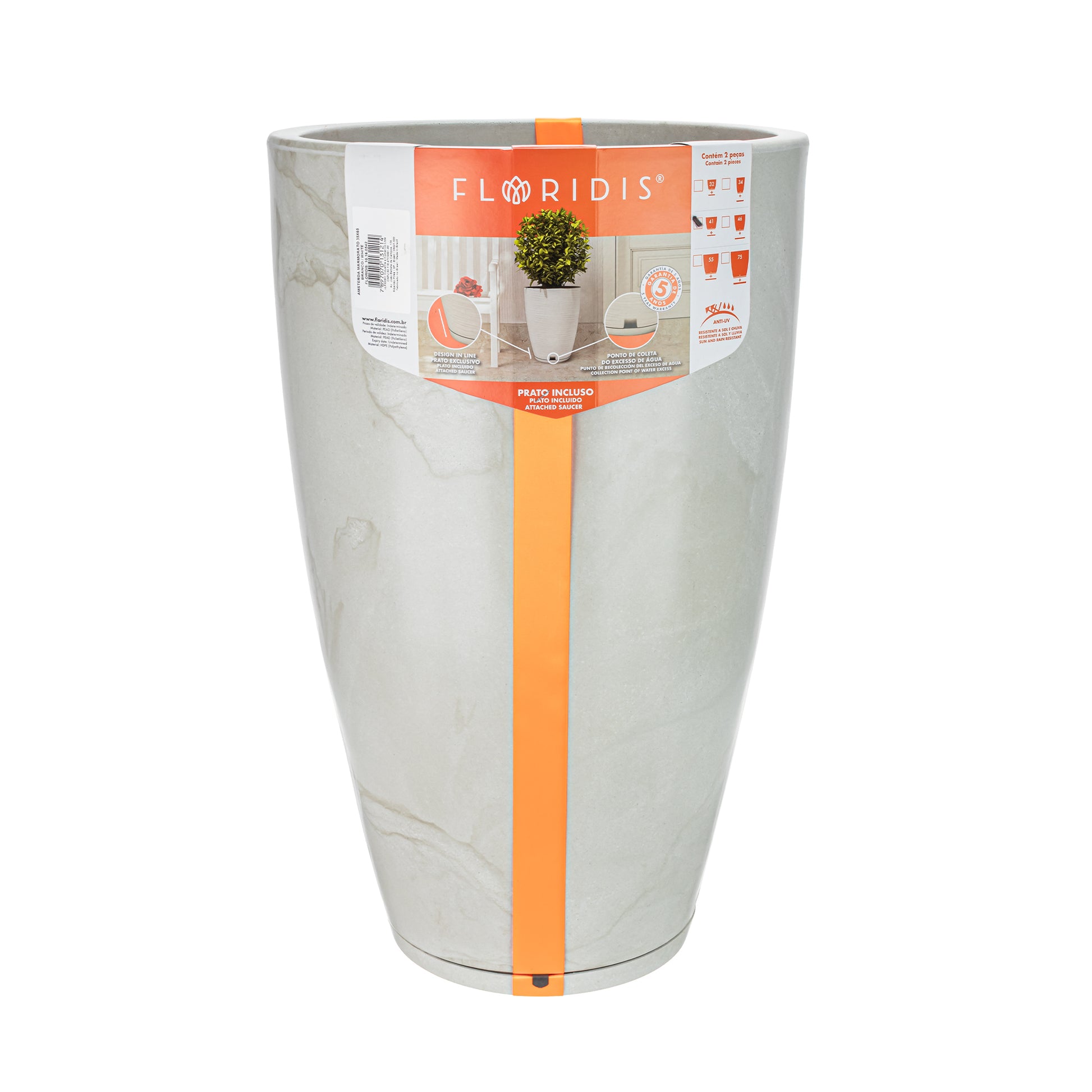 Tiene un colector de agua sobrante discreto y acompaña un plato exclusivo. Resistente al sol y a la lluvia. Garantía de 5 años.