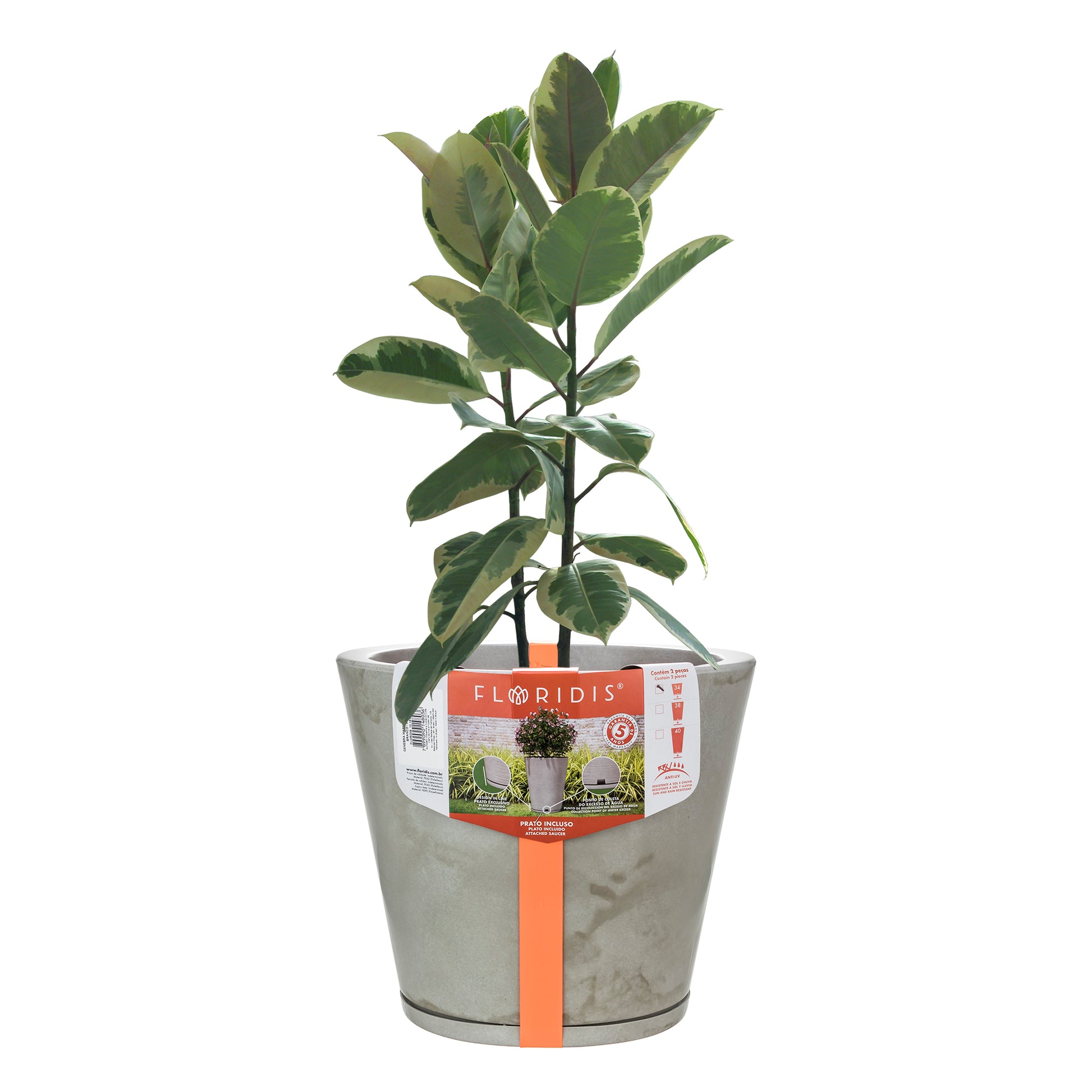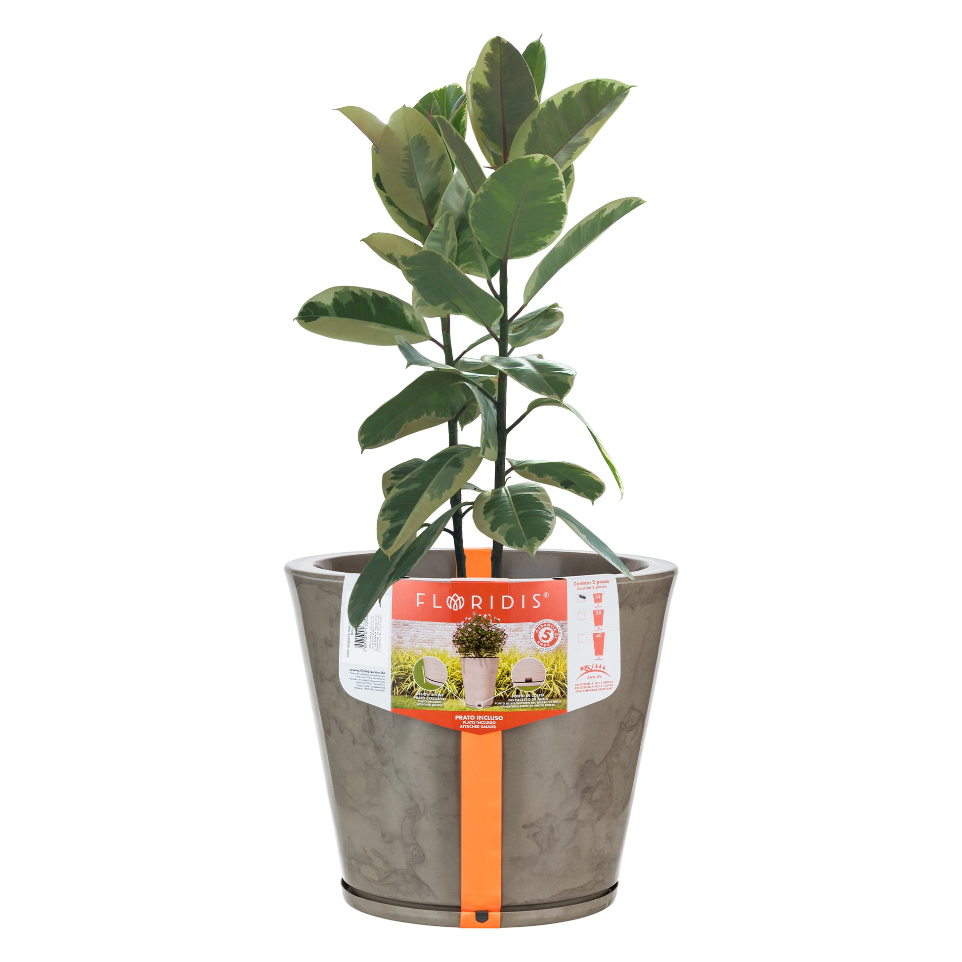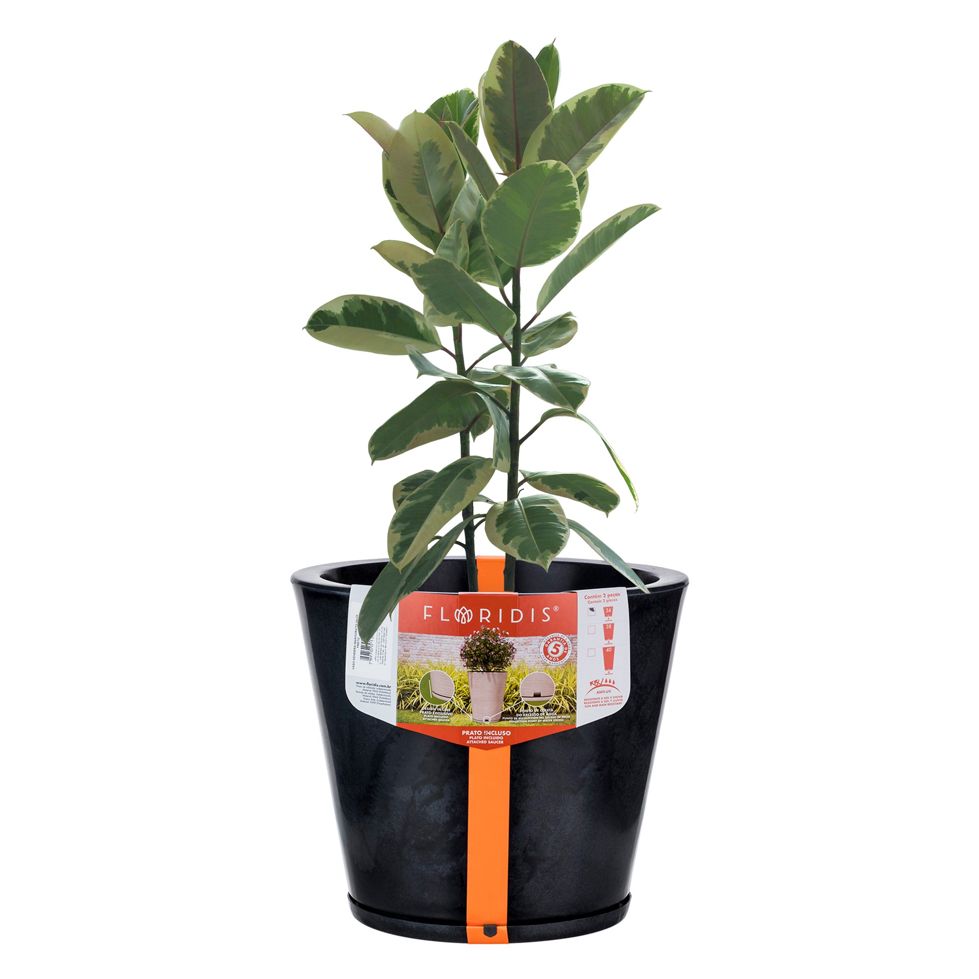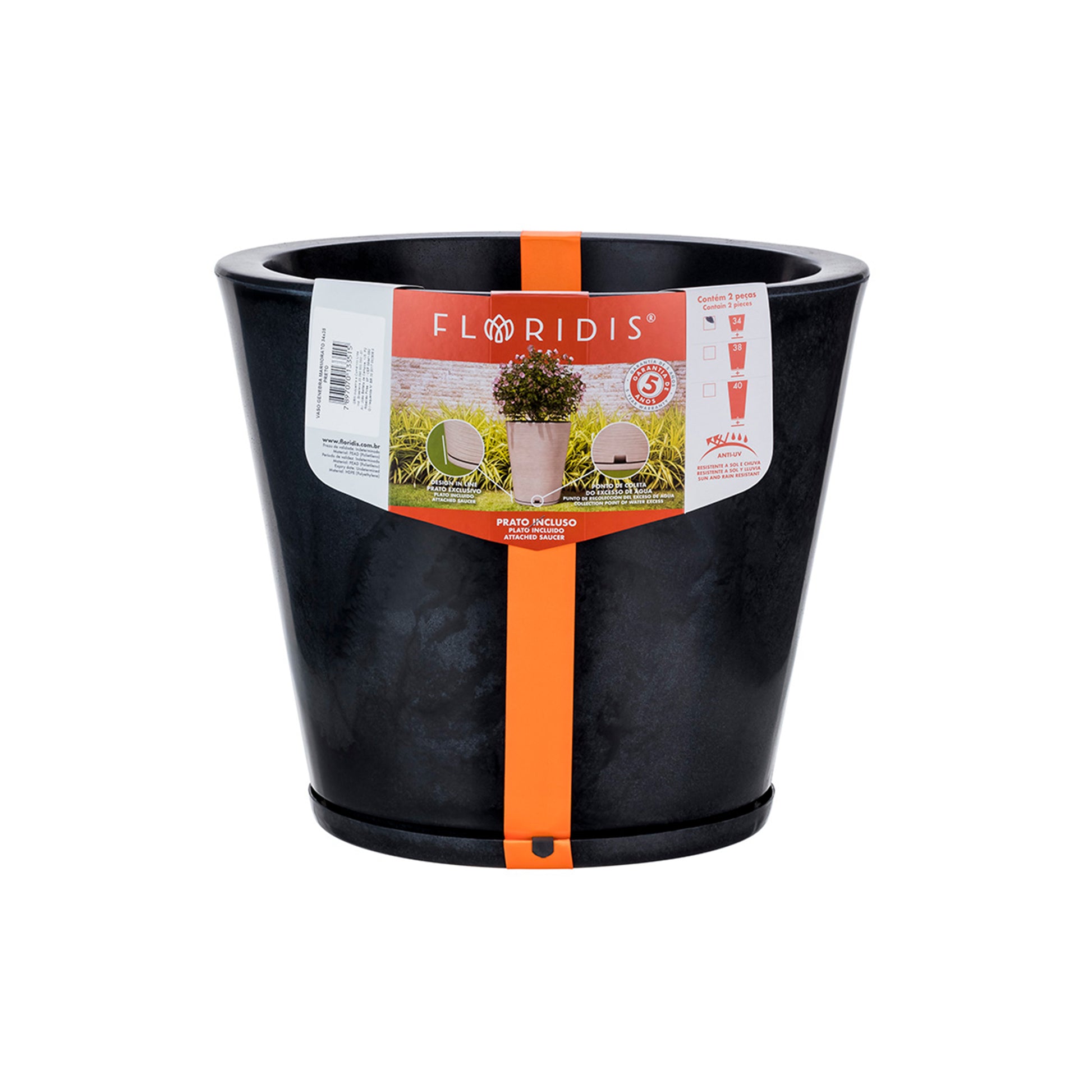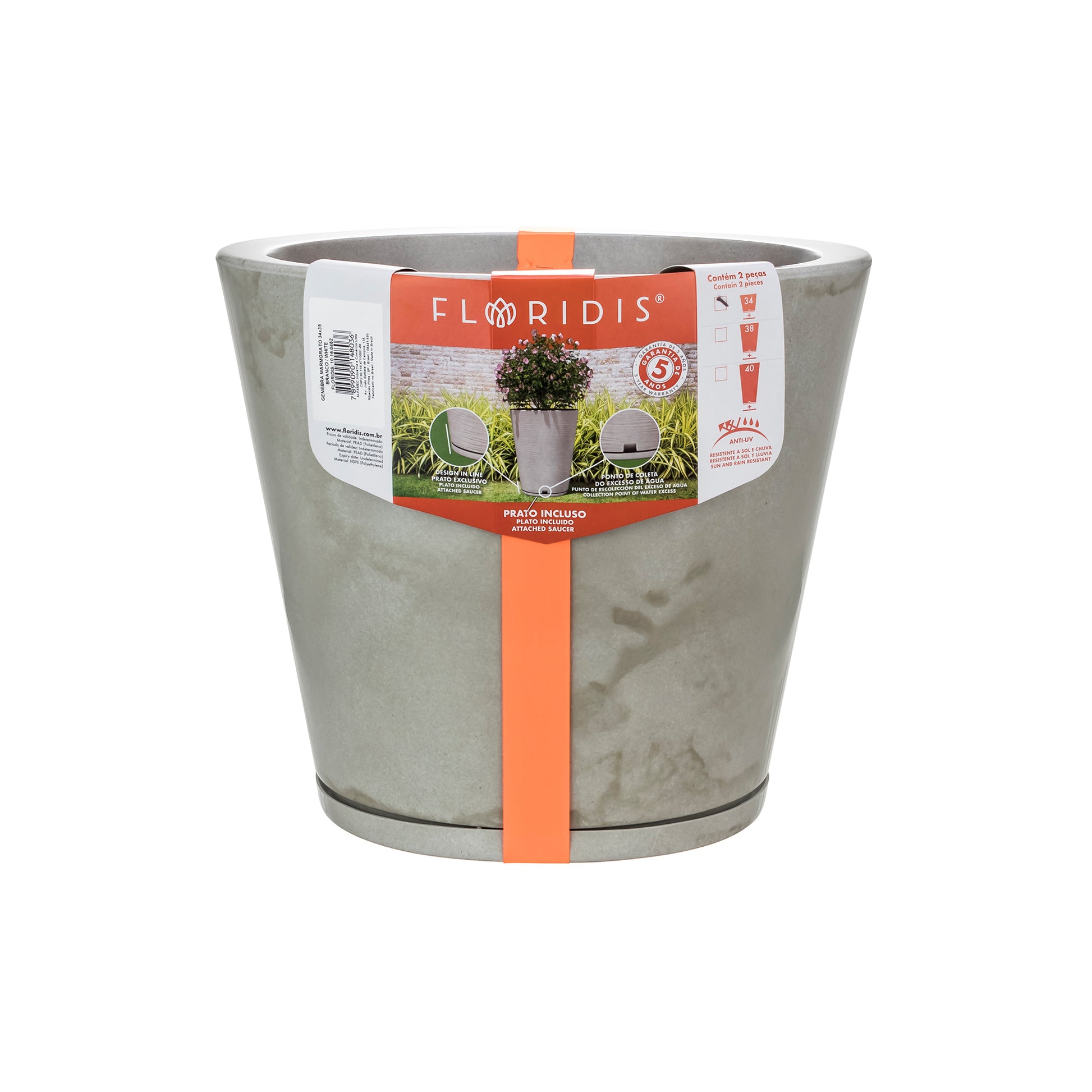 Tiene un colector de agua sobrante discreto y acompaña un plato exclusivo. Resistente al sol y a la lluvia. Garantía de 5 años.