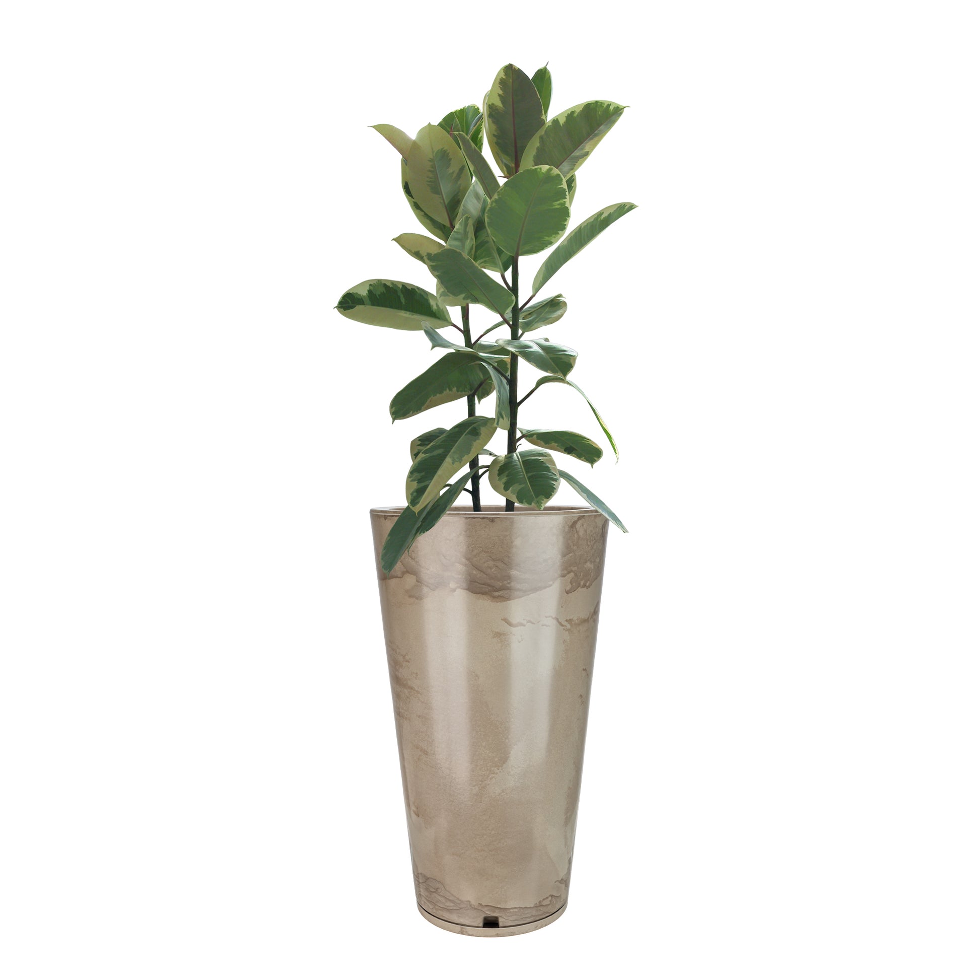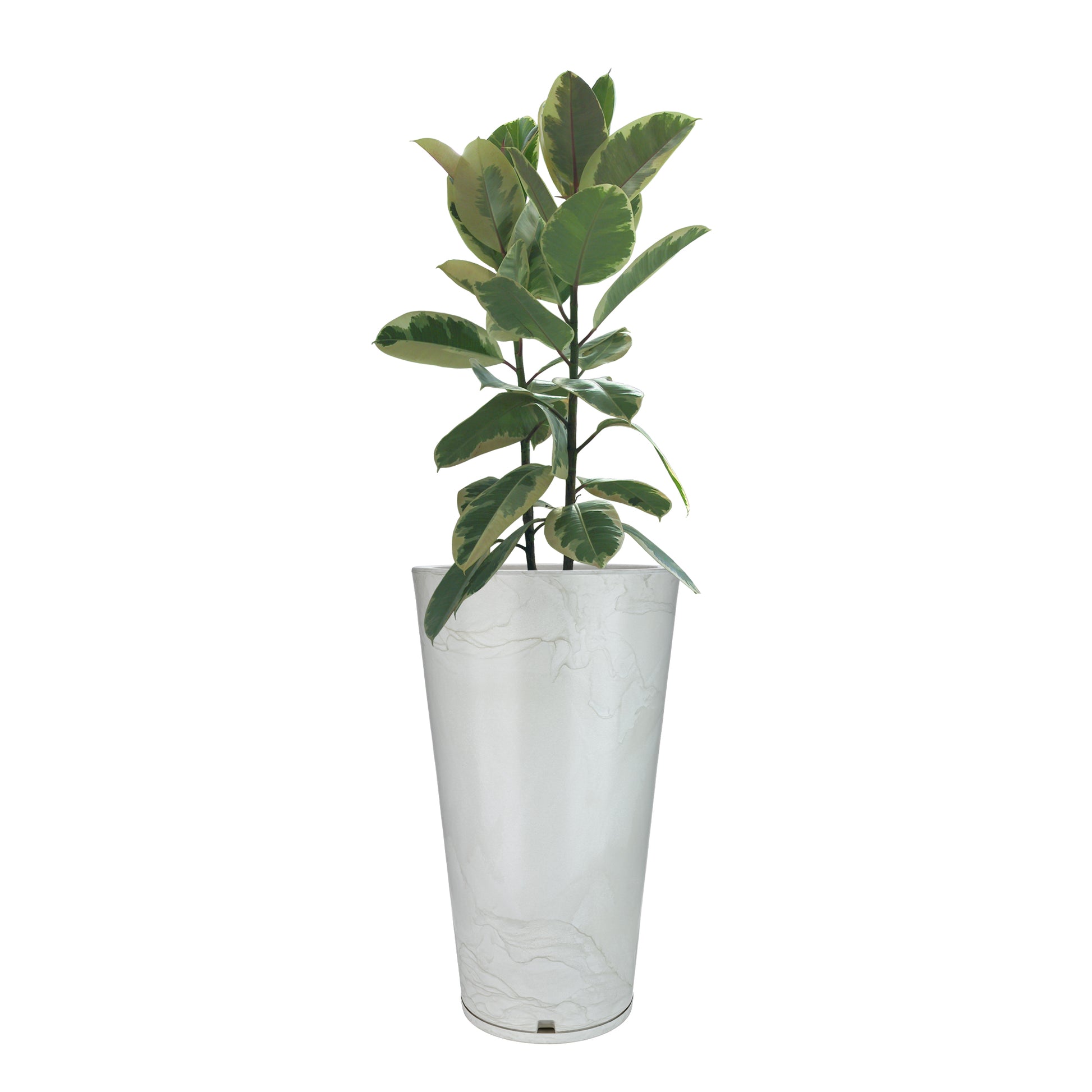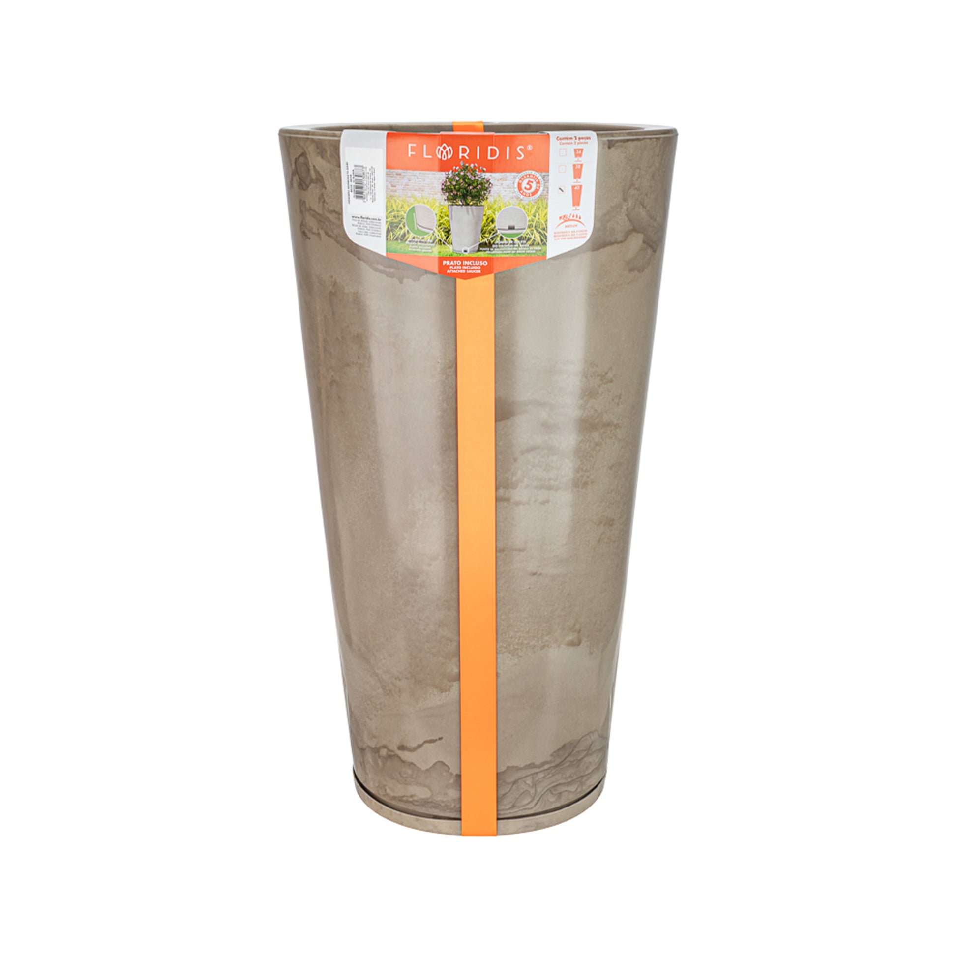 Tiene un colector de agua sobrante discreto y acompaña un plato exclusivo. Resistente al sol y a la lluvia. Garantía de 5 años.